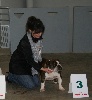 Bon format, bien feminine,bonne machoire bien recourbée, excellente pigmentation, bonnes oreilles, un peu grasse, bonne ossature,côtes bien rondes, bonnes lignes du dessus, excellente queue,l'arrière main pourrait être un peu plus angulée, arrière très ouvert, allures désordonnées.